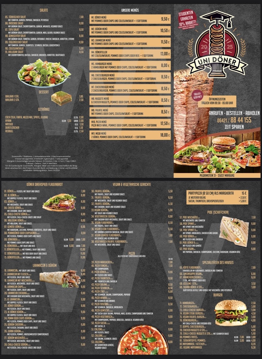 Welcome to Uni Döner, located at Pilgrimstein 31 in Marburg, Germany. This culinary gem has quickly made a name for itself, garnering enthusiastic reviews from locals and visitors alike.